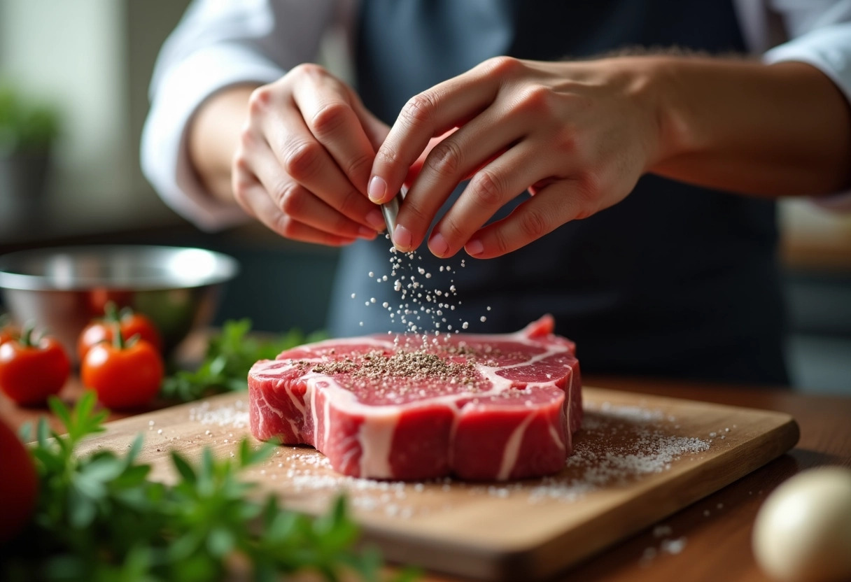 Assaisonner la viande est une étape délicate. Trop de sel avant la cuisson peut assécher le rumsteck. Ajoutez seulement une pincée de sel et poivre juste avant de cuire la viande. Voici quelques points essentiels :